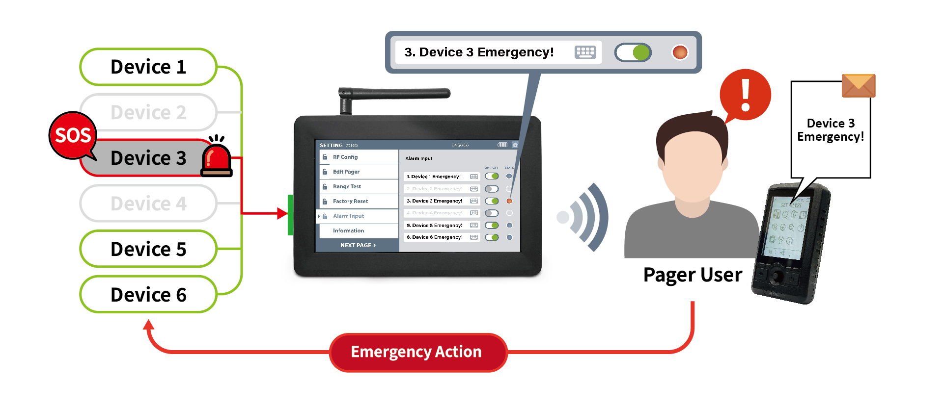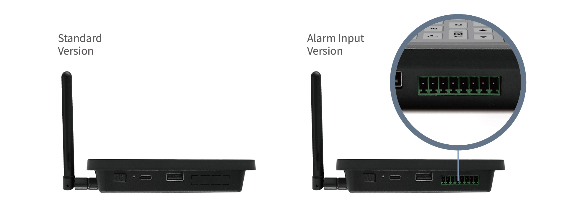 For enhanced functionality, an optional Alarm Input version enables integration with external devices such as smoke detectors or machinery, sending instant alerts to staff when emergencies occur.